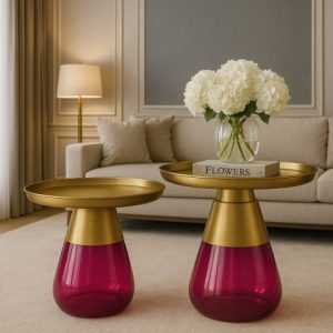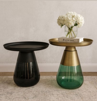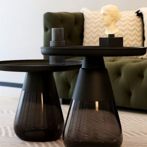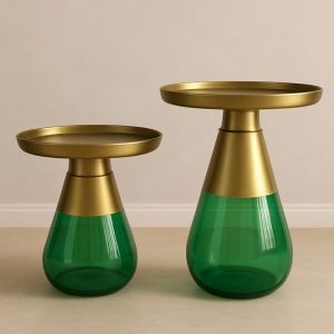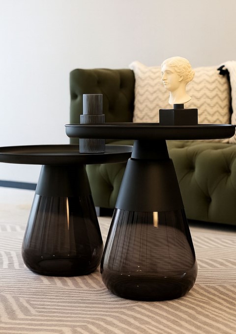 Découvrez notre ensemble de tables d’appoint Élégance Duo, un mélange parfait de raffinement contemporain et de design artistique. Chaque table se distingue par une base en verre soufflé teinté, offrant une transparence luxueuse et un jeu de lumière subtil. La structure supérieure, en acier inoxydable finement travaillé, apporte une touche de sophistication grâce à son contraste harmonieux entre le verre et la finition métallisée. Le modèle doré illumine l’espace avec son éclat chaleureux, tandis que la version noire séduit par son caractère chic et minimaliste. Ensemble, elles créent un duo moderne, polyvalent et hautement décoratif — idéal comme tables d’appoint, piédestaux décoratifs ou éléments de mise en scène dans un salon élégant. Un choix parfait pour ceux qui recherchent des pièces design, premium et intemporelles.